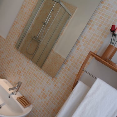 The apartment is on the first floor and has two bedrooms, two bathrooms with shower, a laundry, and a kitchen and dining room from where you can reach a big terrace where a table and some chairs will be ready for your breakfasts and dinners.