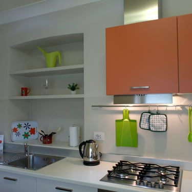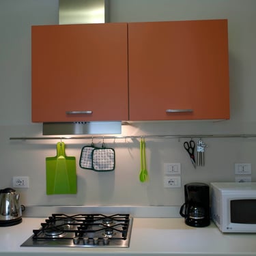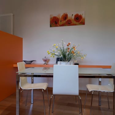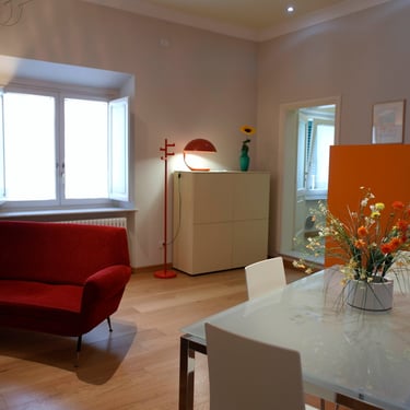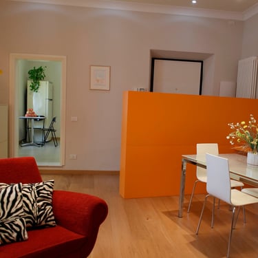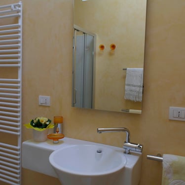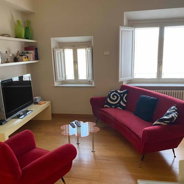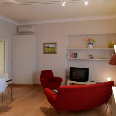 It is situated on the second and last floor of a large building, a convent in the medieval age, and looks pretty and modern in furnitures. Entrance, kitchen and dining area are very comfortable; the apt. has a double bedroom, a bathroom with shower, a laundry with washing machine and living room with a chair bed. Mattresses are new and very comfortable, air conditioning is at your disposal and you can have breakfast in the kitchen and lunch and dinner in the light dining room.